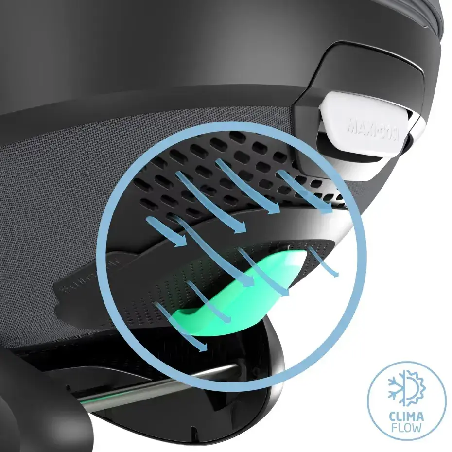 • Pebble 360 Pro оснащен дышащими панелями ClimaFlow, которые обеспечивают оптимальную циркуляцию воздуха и гарантируют, что у вашего ребенка всегда будет правильная температура.