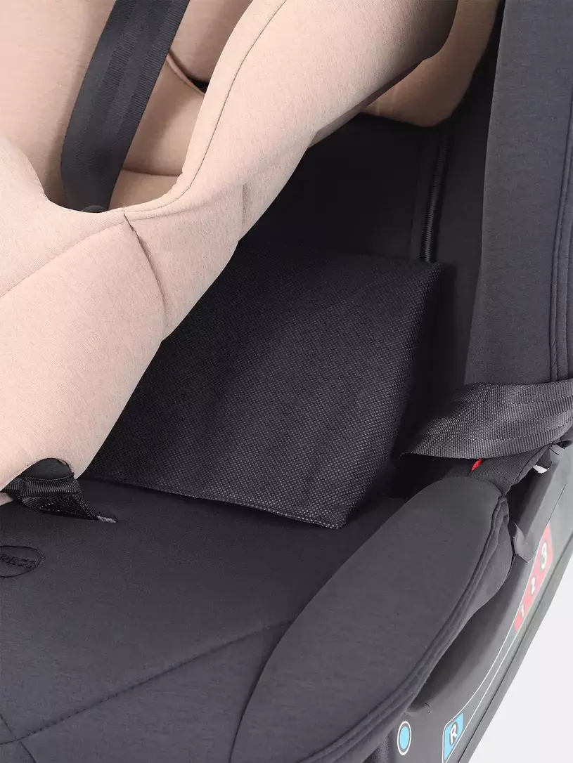 в комплектацию входит анатомическая треугольная подушка-вкладыш, необходимая крохе от 0 до 6 месяцев. С помощью этого аксессуара чаша автокресла выравнивается, комфорт достигается благодаря уменьшению угла наклона внутренней части автокресла. Создается практически ровная поверхность для новорожденного.