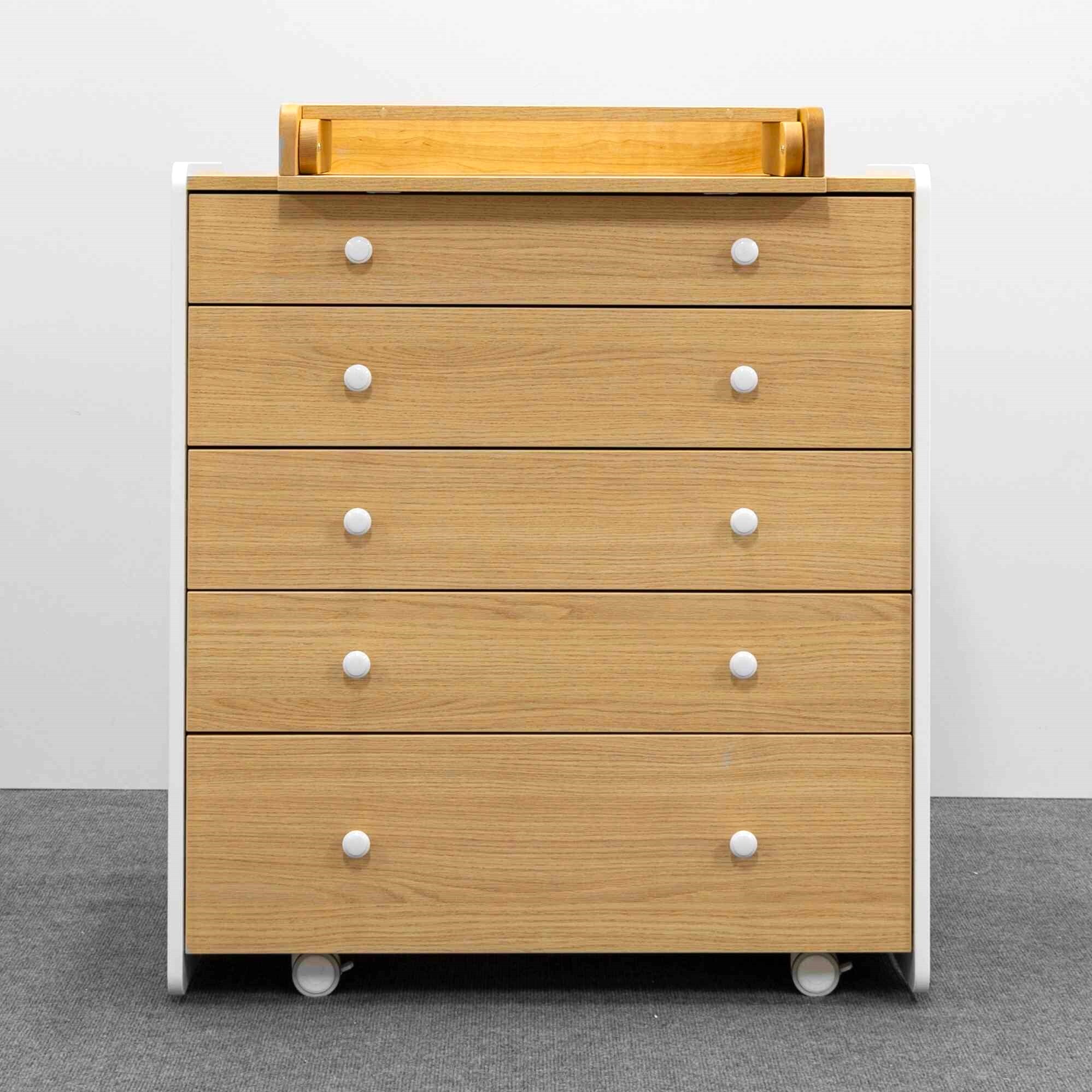 Комод Mari - это комод, созданный в современном стиле с учетом эргономики и трендов в индустрии детских товаров. Комод можно установить на колеса, что позволит беспрепятственно убираться за ним даже женщине. Пять вместительных ящиков на направляющих полного выдвижения с тихим ходом помогут сэкономить место и уложить все вещи по местам. В комплекте к верхнему ящику идет органайзер с секциями, для разграничения пространства. Боковые стенки изготовлены из экологически чистого материала, покрытые износостойкой безопасной краской.