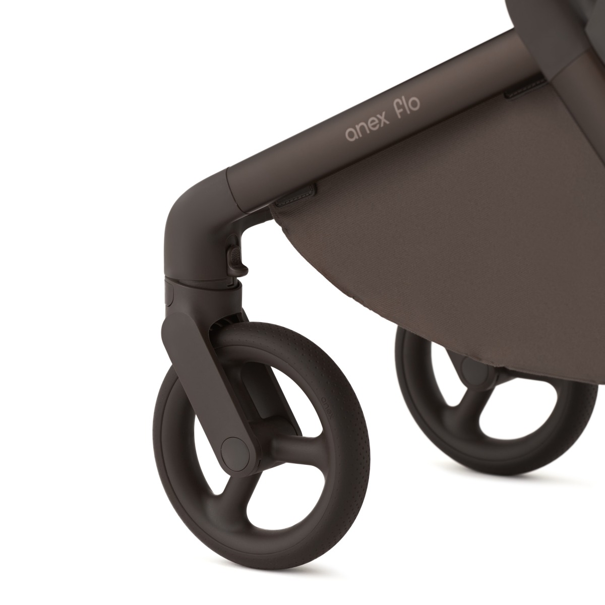 Anex Flo адаптируется к любым условиям, обеспечивая плавный и комфортный ход даже на неровных поверхностях. Прочные полиуретановые колёса и двойные амортизаторы гарантируют безопасность и спокойствие вашего малыша.