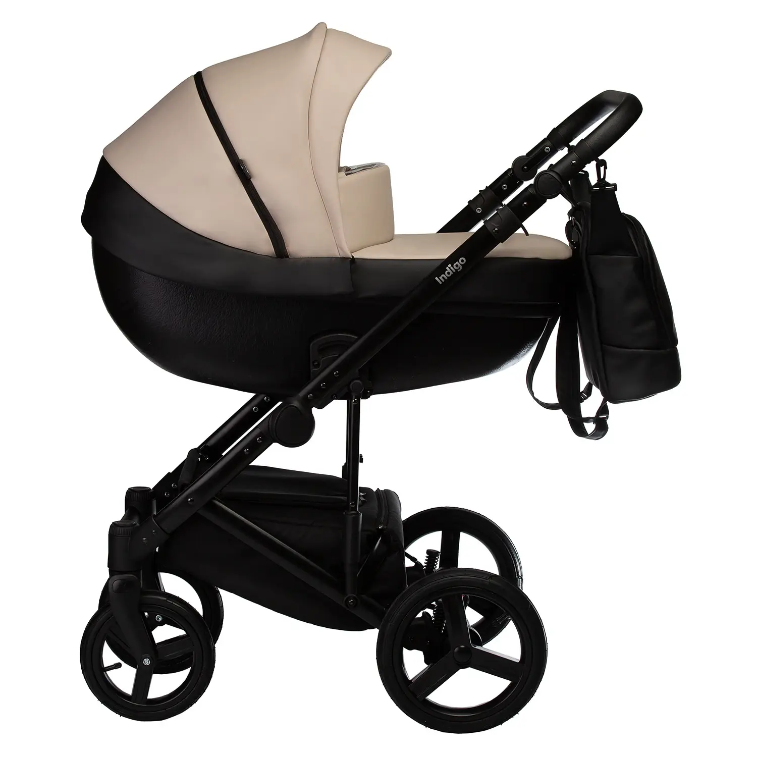 - Коляска 2 в 1 Indigo TOUR ECO te 01 (черная кожа+бежевая кожа)