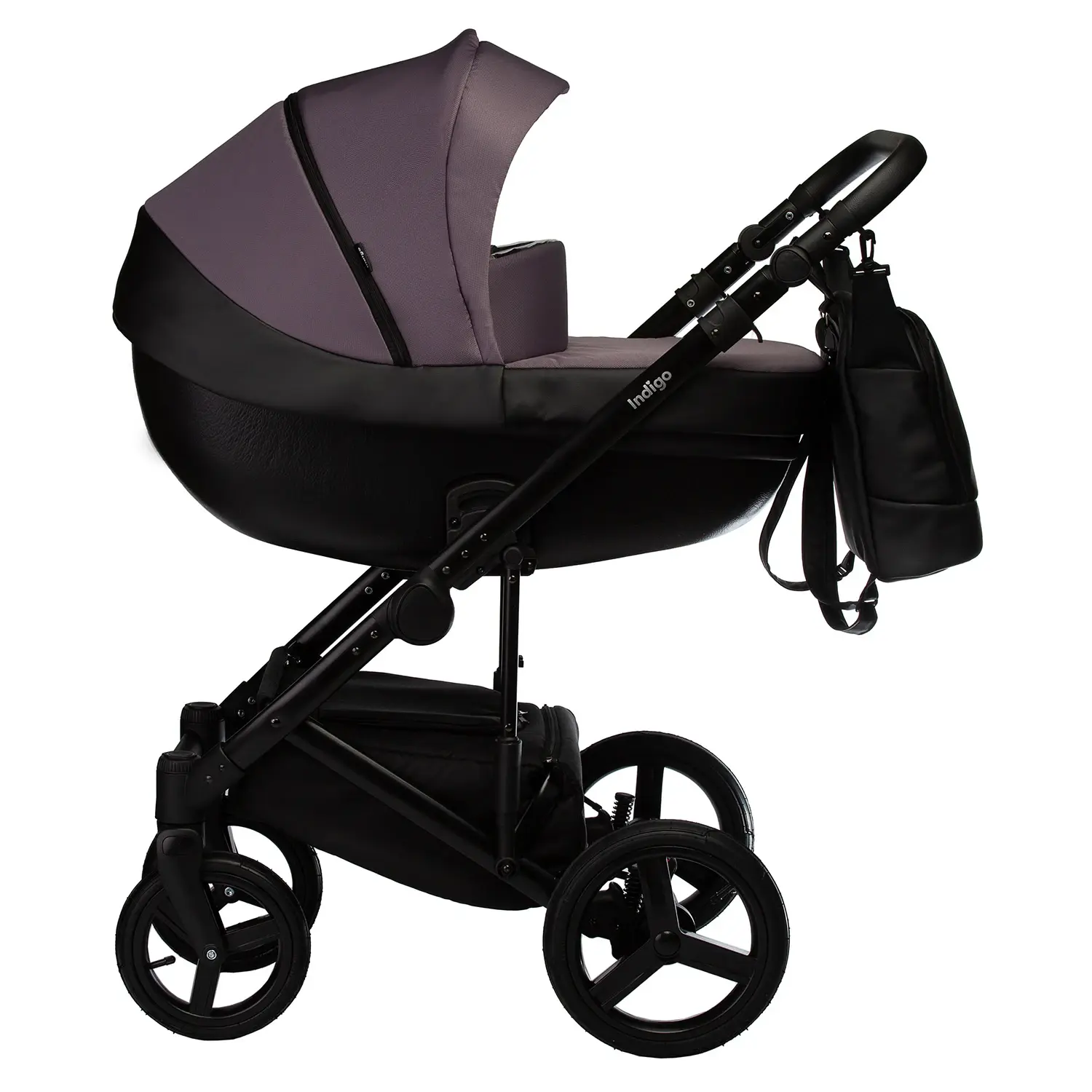 - Коляска 2 в 1 Indigo TOUR ECO te 08 (черная кожа+фиолетовый)