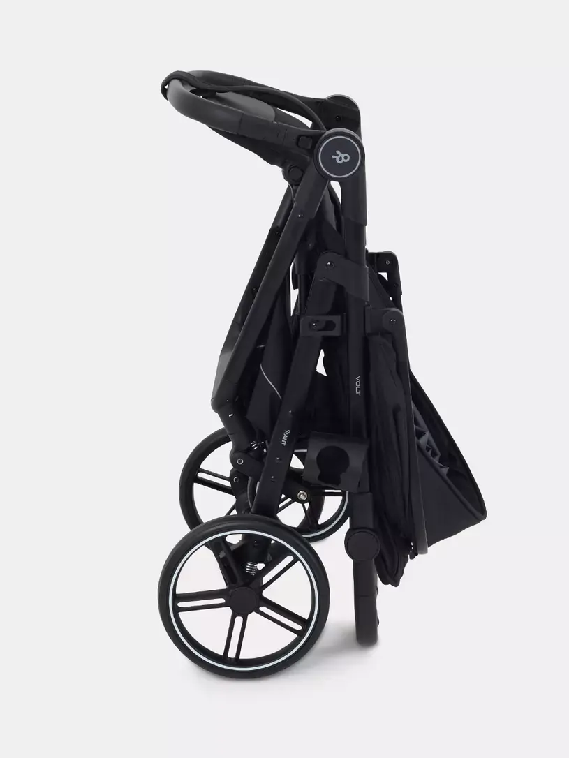 - сложенная коляска устойчиво стоит в вертикальном положении, что не дает ей испачкаться и обеспечивает комфортное хранение