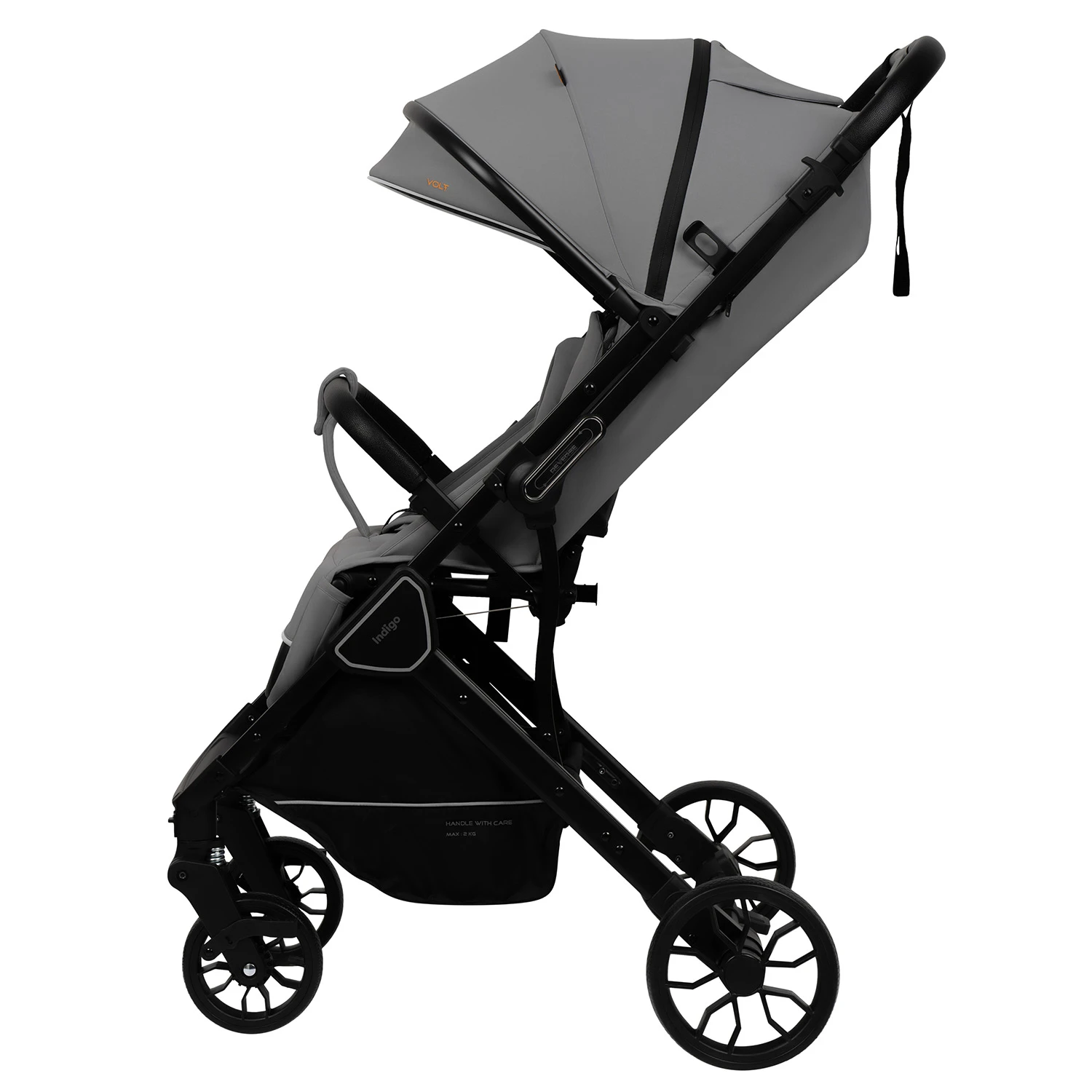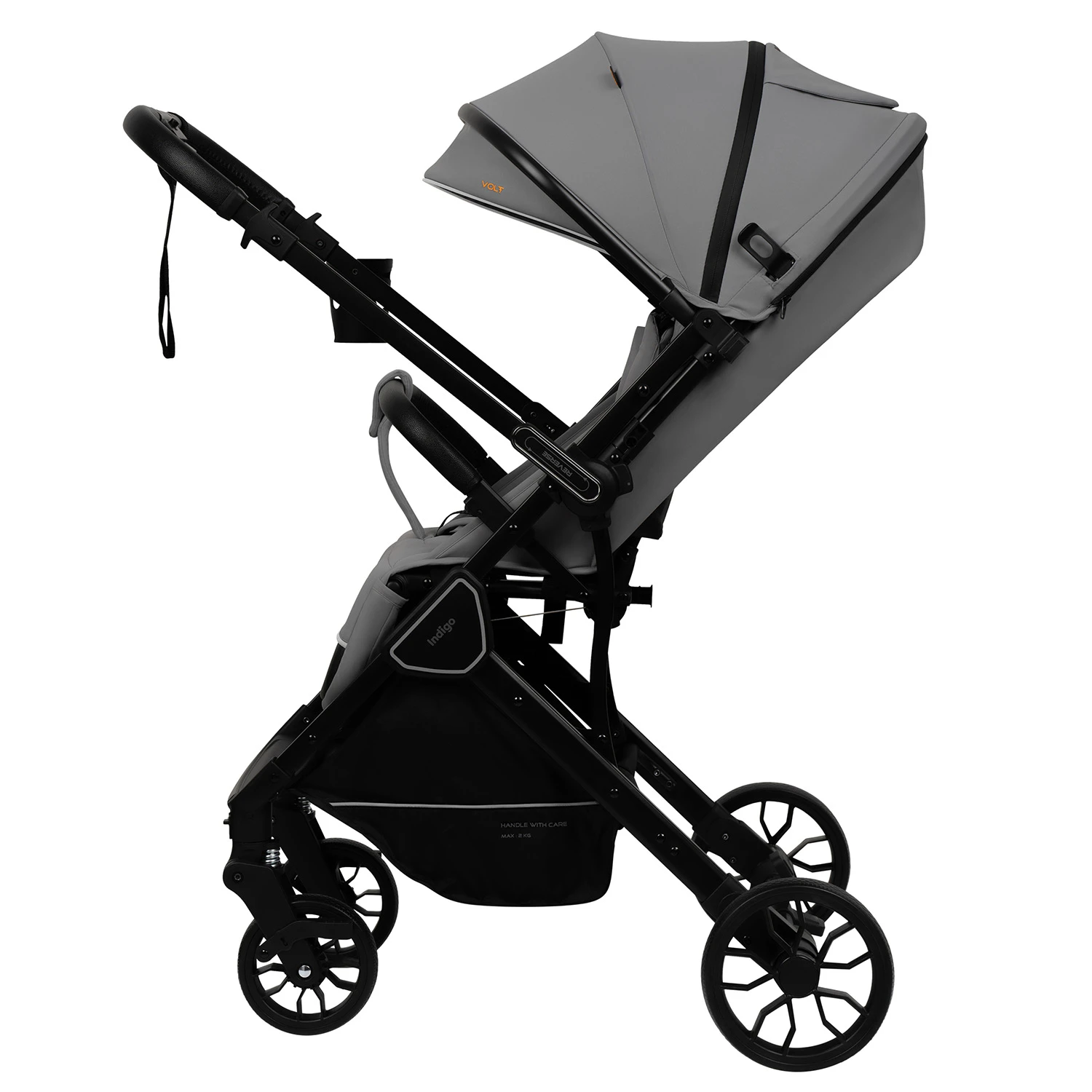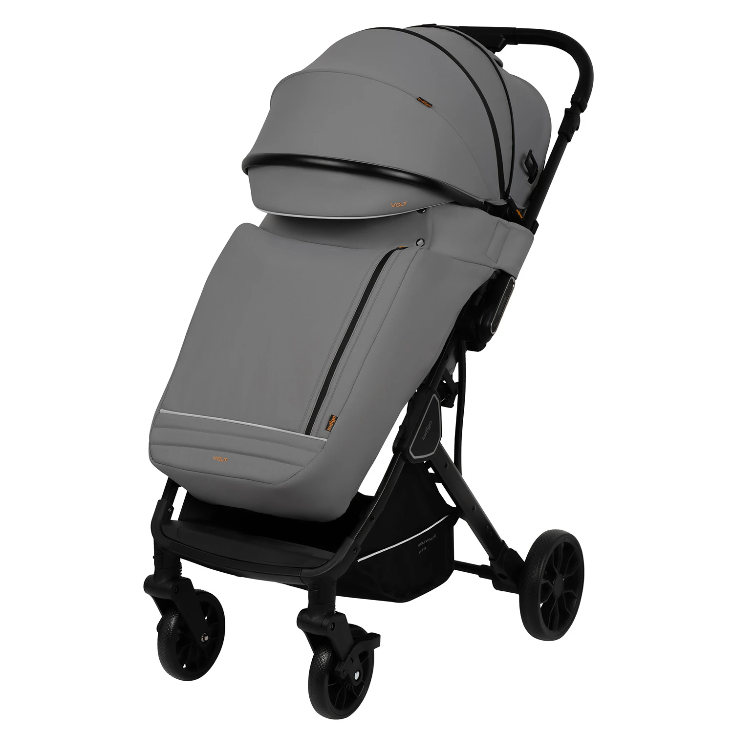 Прогулочная коляска VOLT от бренда Indigo — практичная модель для розничного ассортимента, ориентированная на повседневное использование и стабильный потребительский спрос. Коляска сочетает компактные габариты, стильный дизайн и набор востребованных функций, актуальных для городских прогулок.