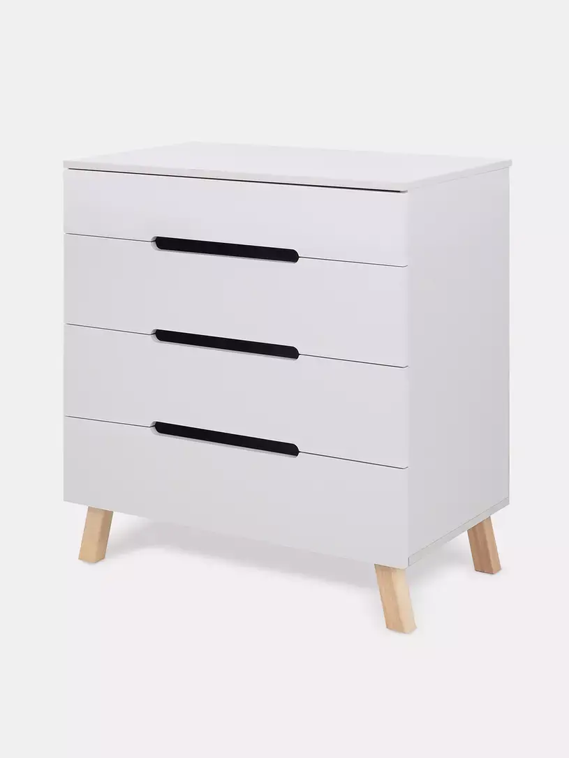 Пеленальный комодик, выполненный в лаконичном скандинавском стиле, станет настоящим украшением детской комнаты и выдержит серьезные нагрузки.
