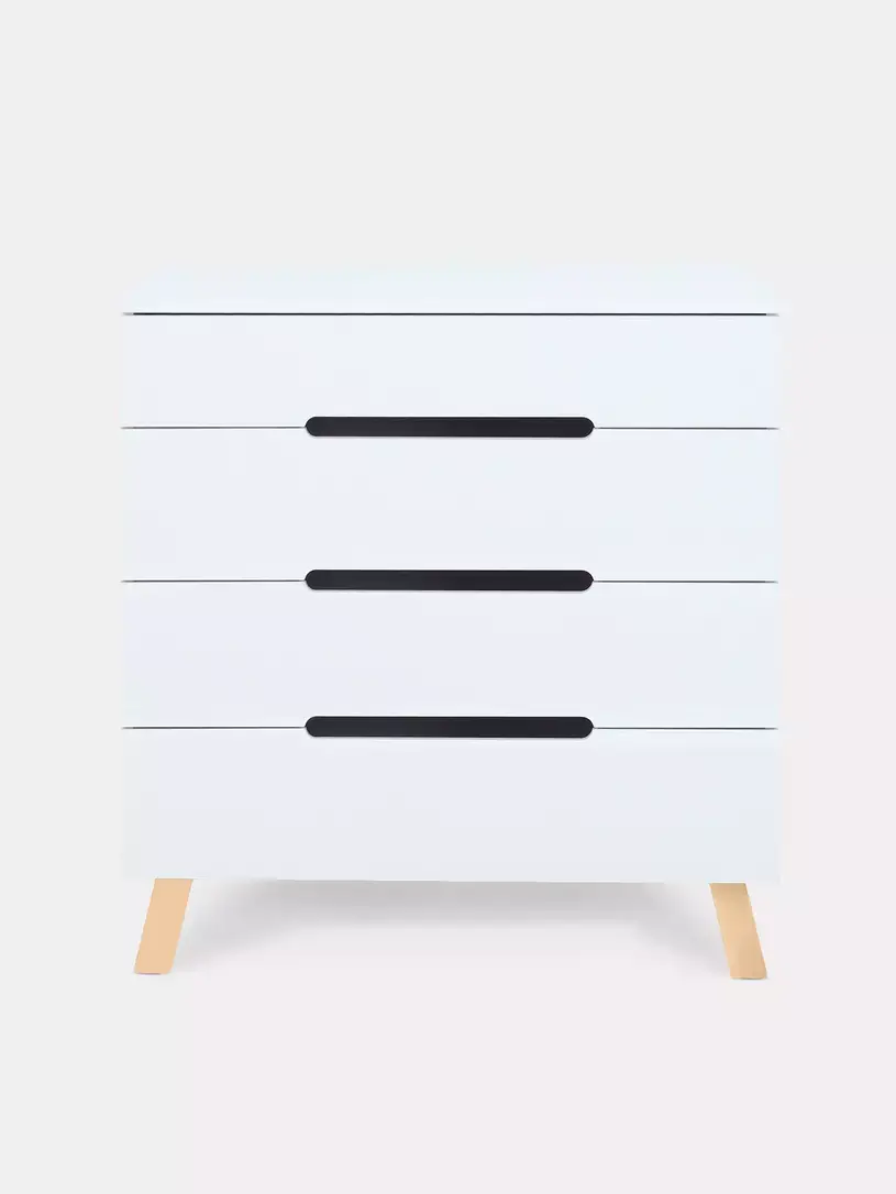 Пеленальный комодик, выполненный в лаконичном скандинавском стиле, станет настоящим украшением детской комнаты и выдержит серьезные нагрузки.