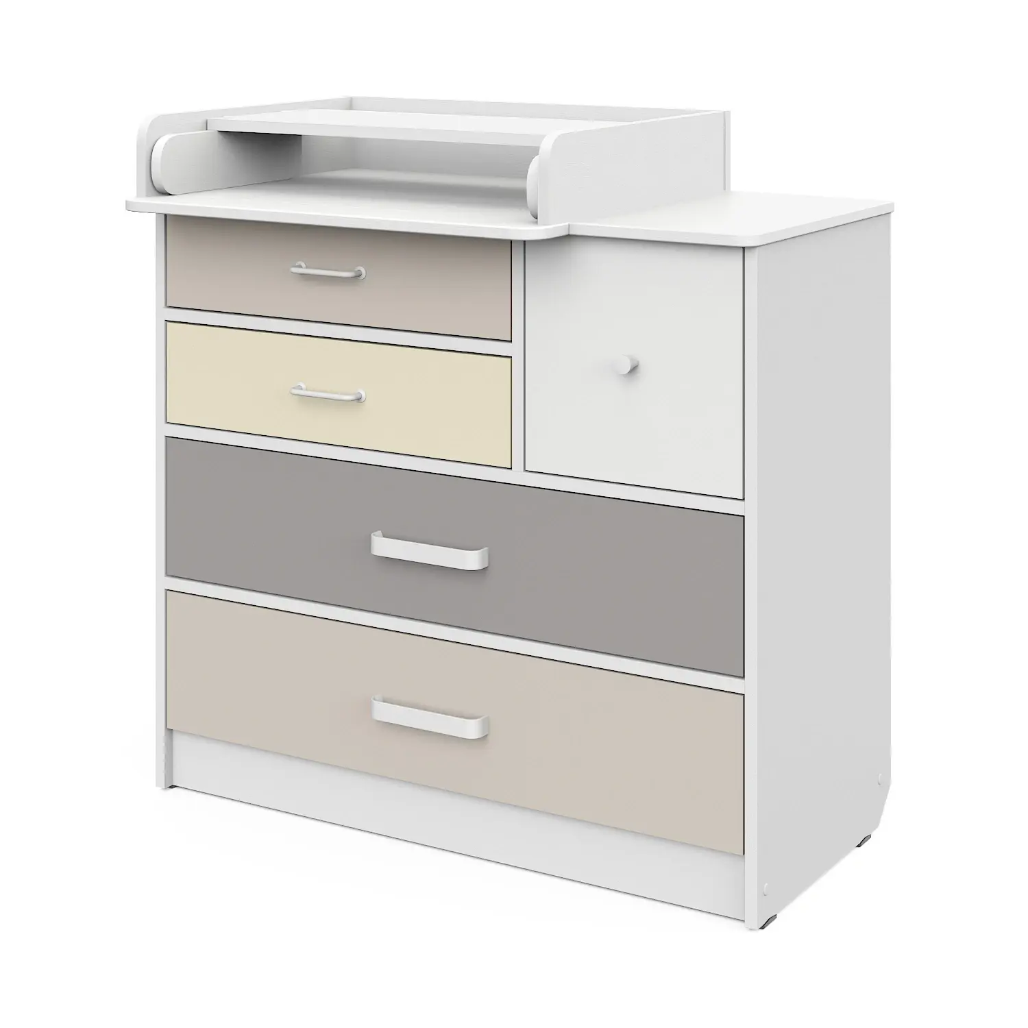 Пеленальный комод Сириус "Norman" с легкосъемным раскладным пеленальным столиком - это большой вместительный комод шириной 92 см с пятью ящиками разного размера, которому нет аналогов на рынке. Ящики выполнены в четырех цветах пастельных тонов, устанавливаются на бесшумные шариковые направляющие. Удобный ящик, расположенный справа от пеленального столика, позволяет держать под рукой еще больше вещей, необходимых при занятиях с новорожденным малышом. Дизайнерские ручки на изделии выгодно подчёркивают внешний вид комода.