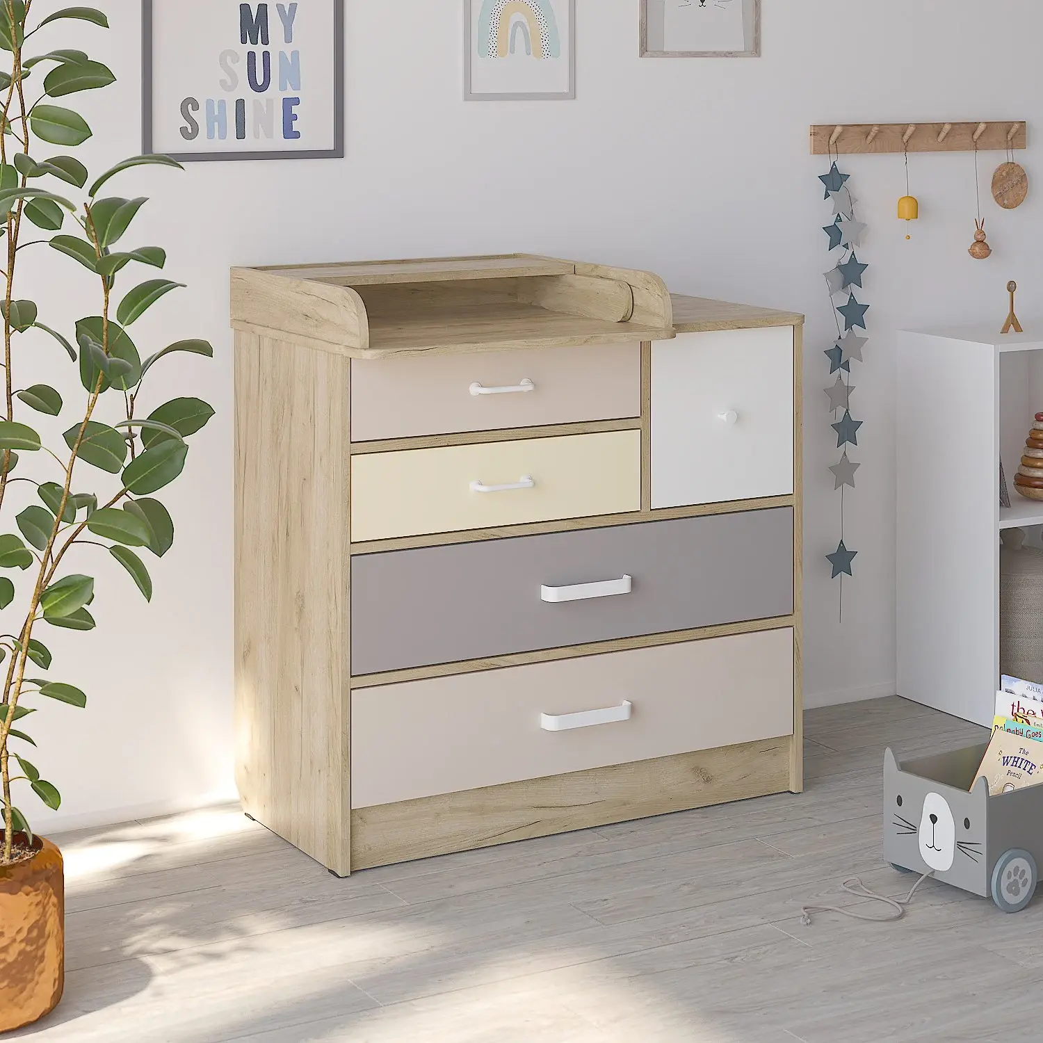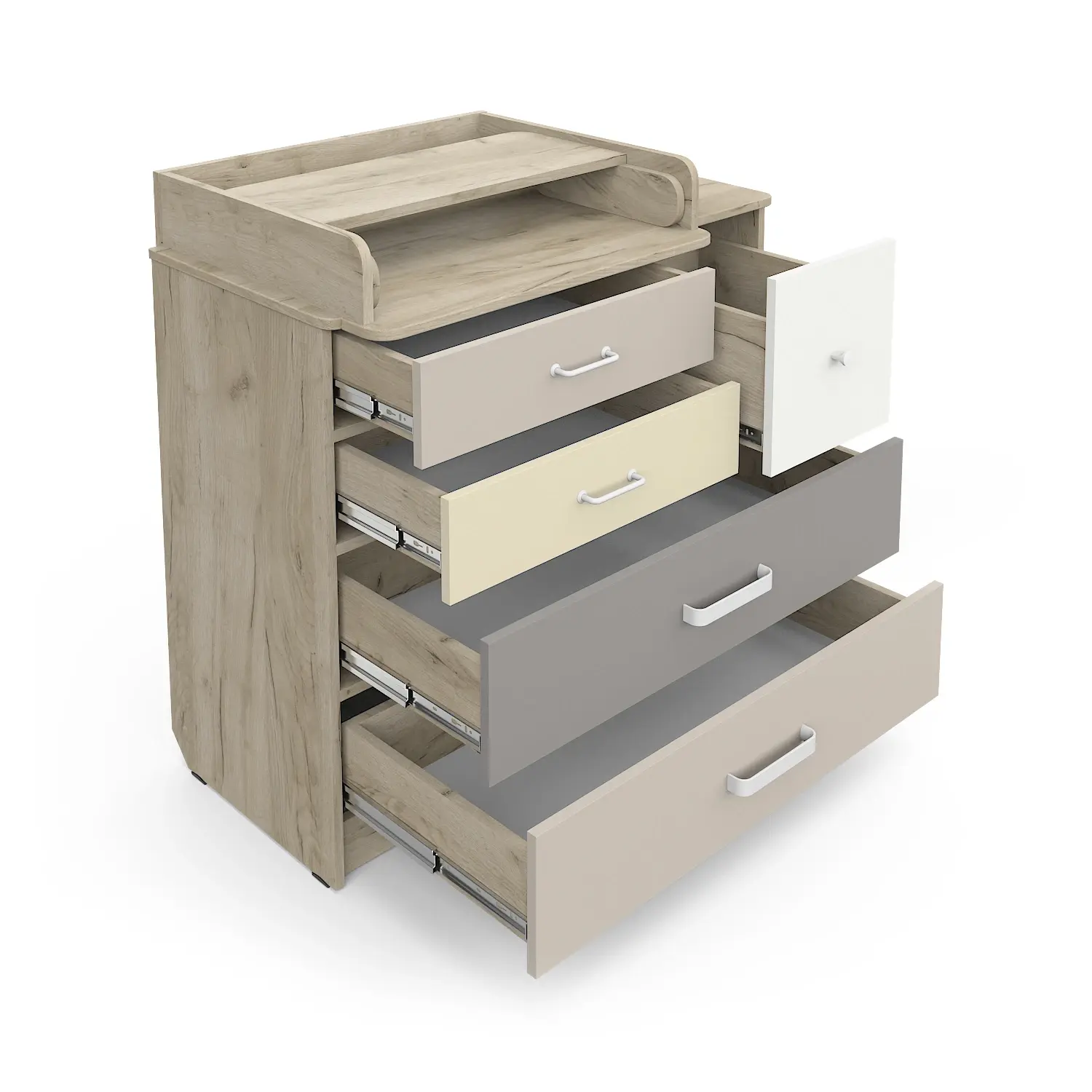 Пеленальный комод Сириус "Norman" с легкосъемным раскладным пеленальным столиком - это большой вместительный комод шириной 92 см с пятью ящиками разного размера, которому нет аналогов на рынке. Ящики выполнены в четырех цветах пастельных тонов, устанавливаются на бесшумные шариковые направляющие. Удобный ящик, расположенный справа от пеленального столика, позволяет держать под рукой еще больше вещей, необходимых при занятиях с новорожденным малышом. Дизайнерские ручки на изделии выгодно подчёркивают внешний вид комода.