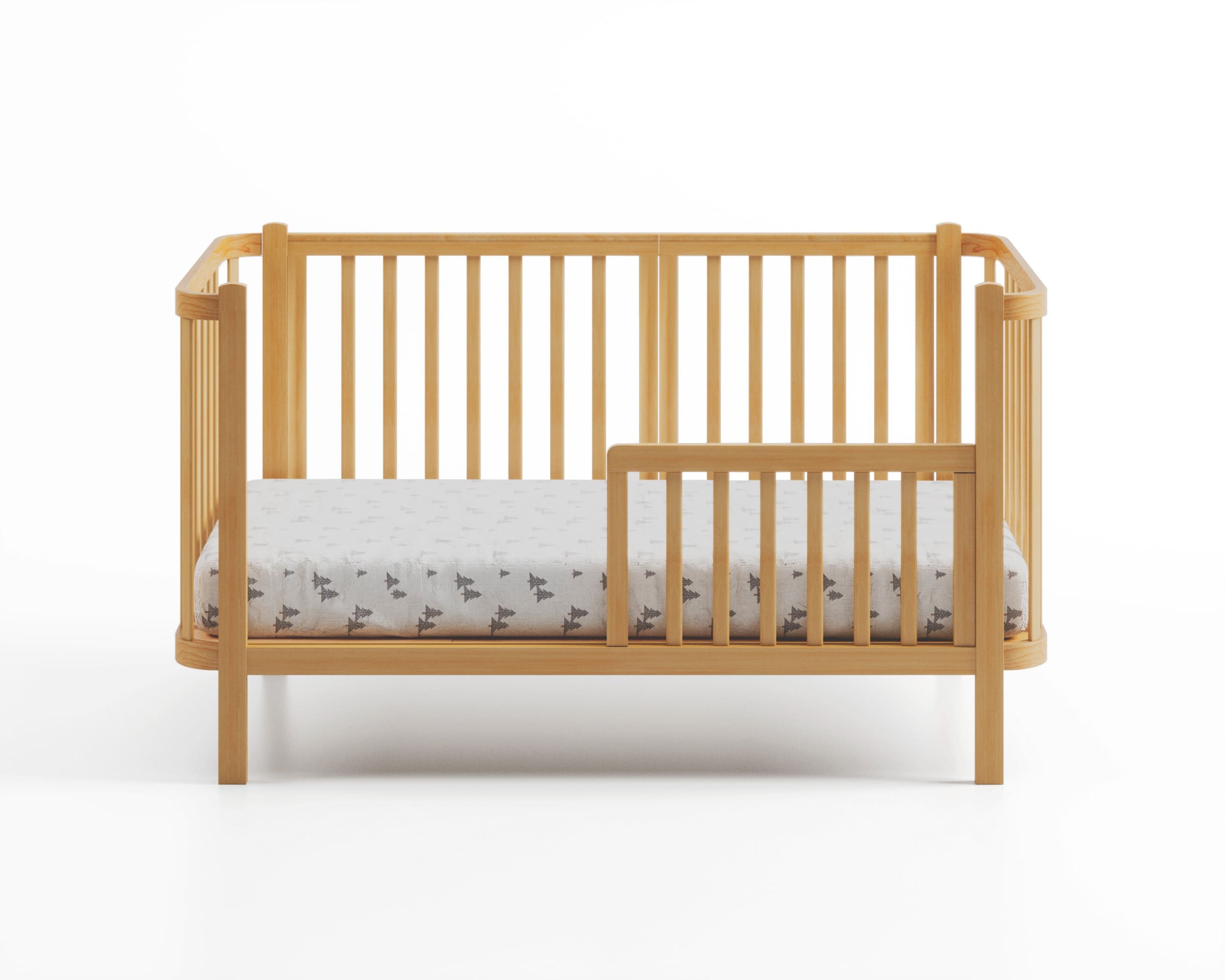 Также в комплекте идет защитный бортик высотой 43см, который не позволяет упасть ребенку с кроватки во время сна. Бортик можно поставить как с левой, так и с правой стороны или вовсе не ставить.