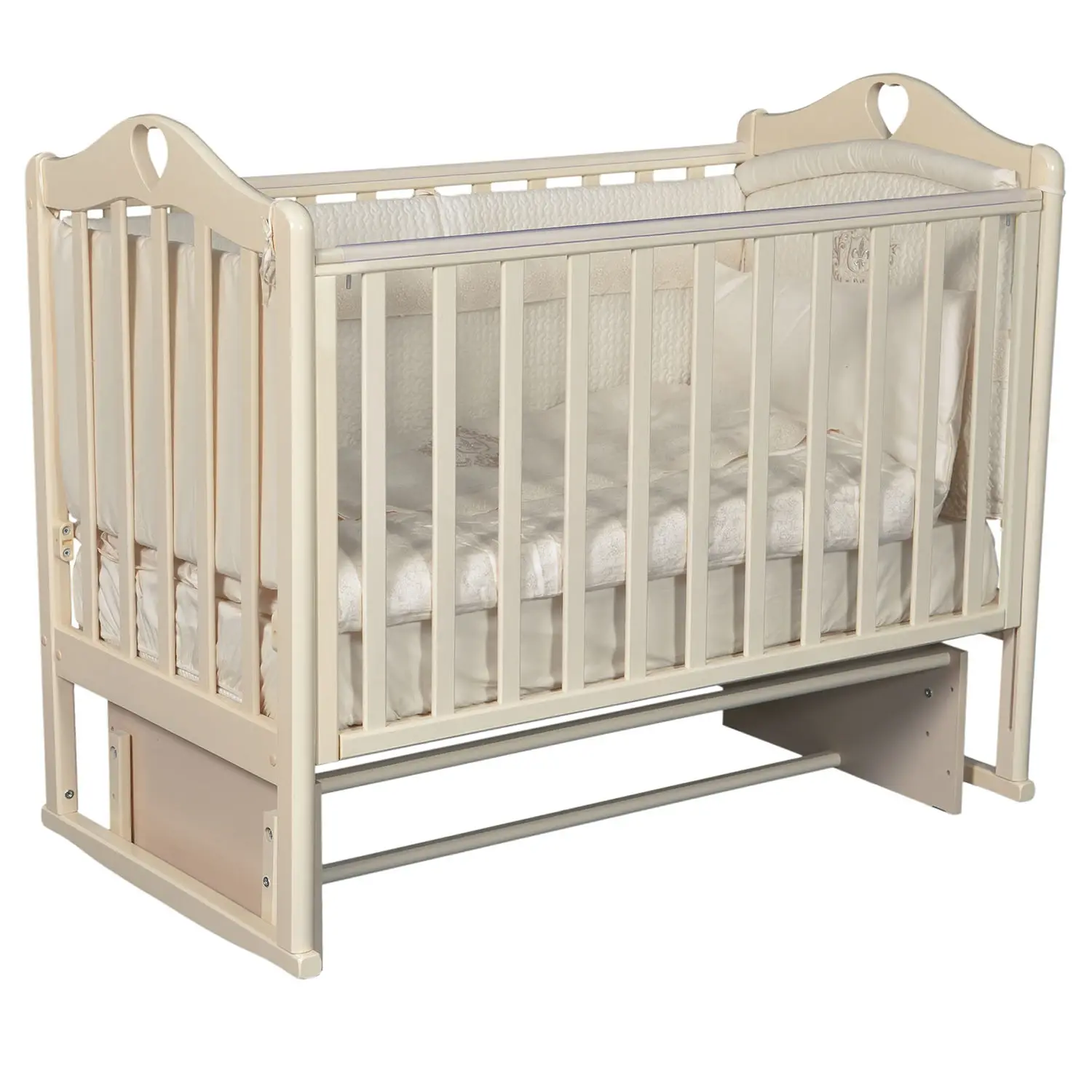 2. Воздушный дизайн: тонкие рейки и прутья, милые сердечки на боковых стенках. Были выбраны спокойные цвета, создающие атмосферу комфорта. Кроватка подойдет к интерьеру детской в сдержанном стиле. Мы выбрали два цвета для нее: белый и слоновая кость. Посмотрите на фото.
