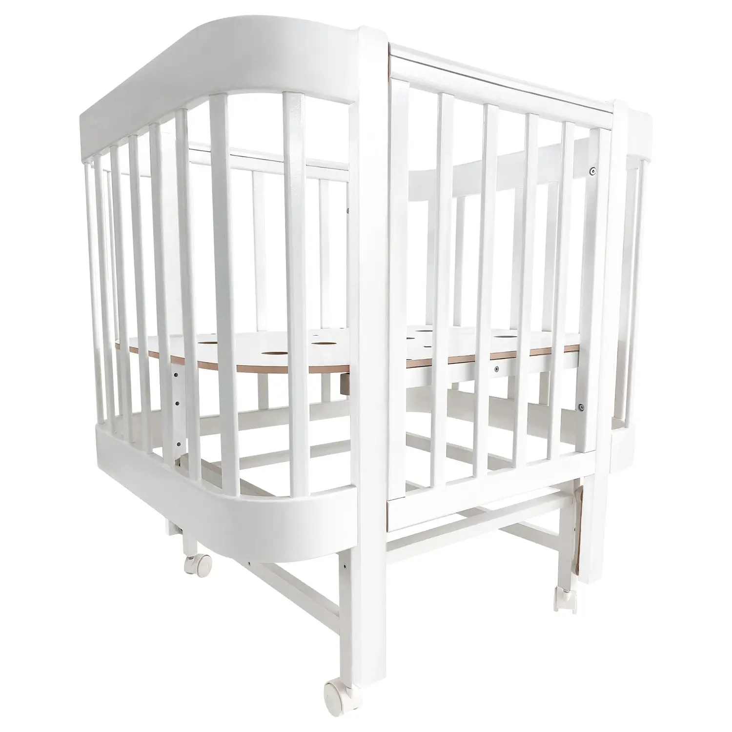 - Кровать детская Indigo Italiano Baby продольный маятник на колесах белый-белый