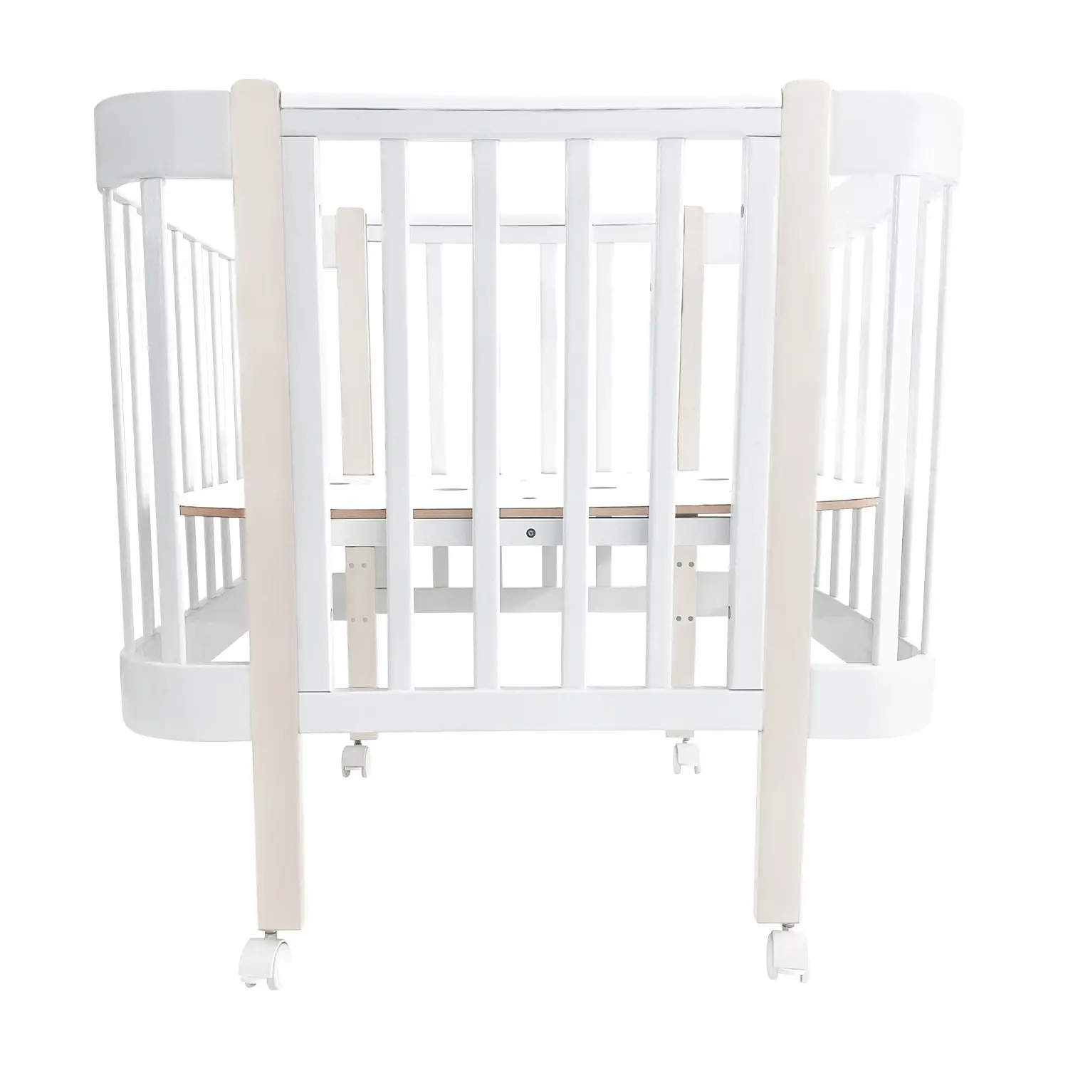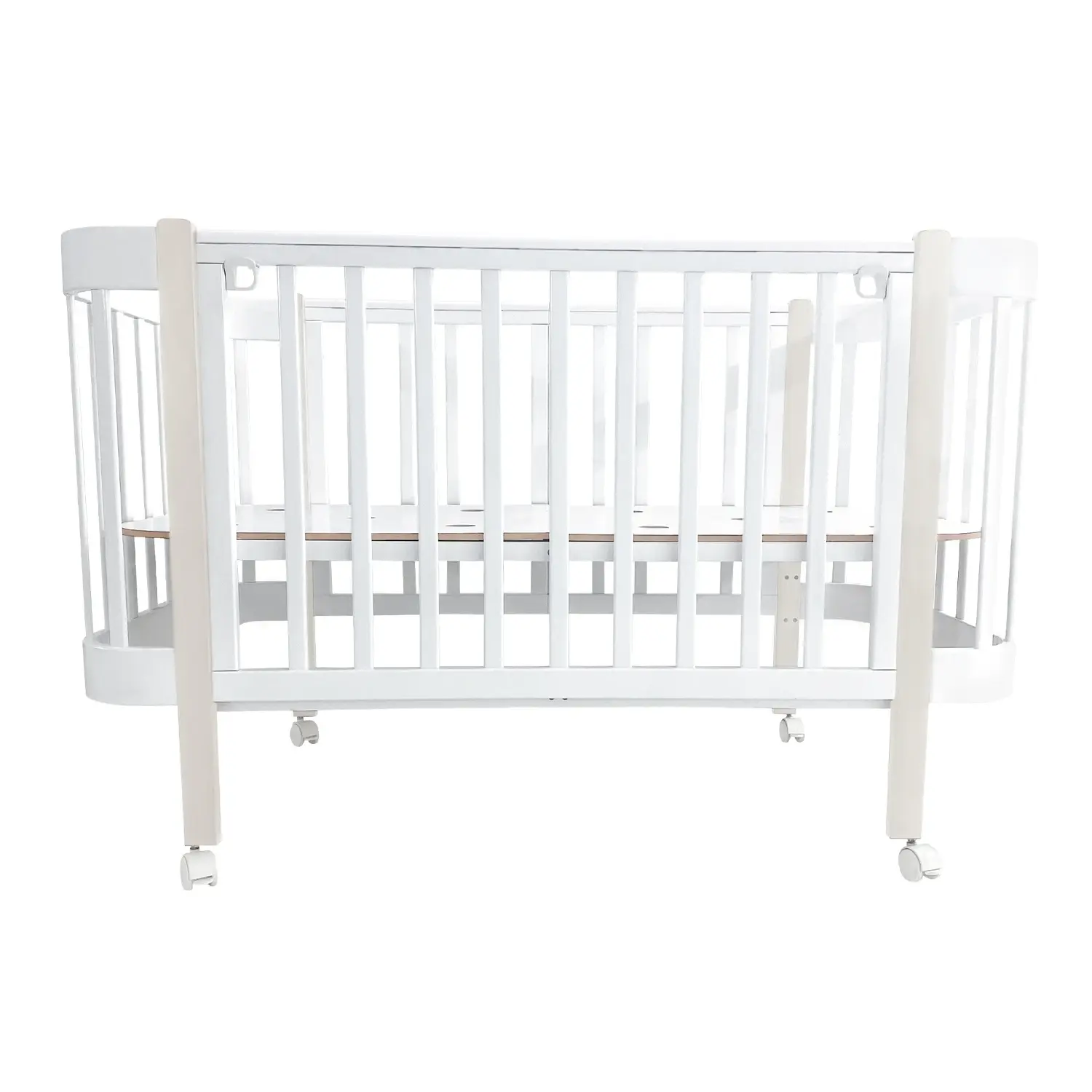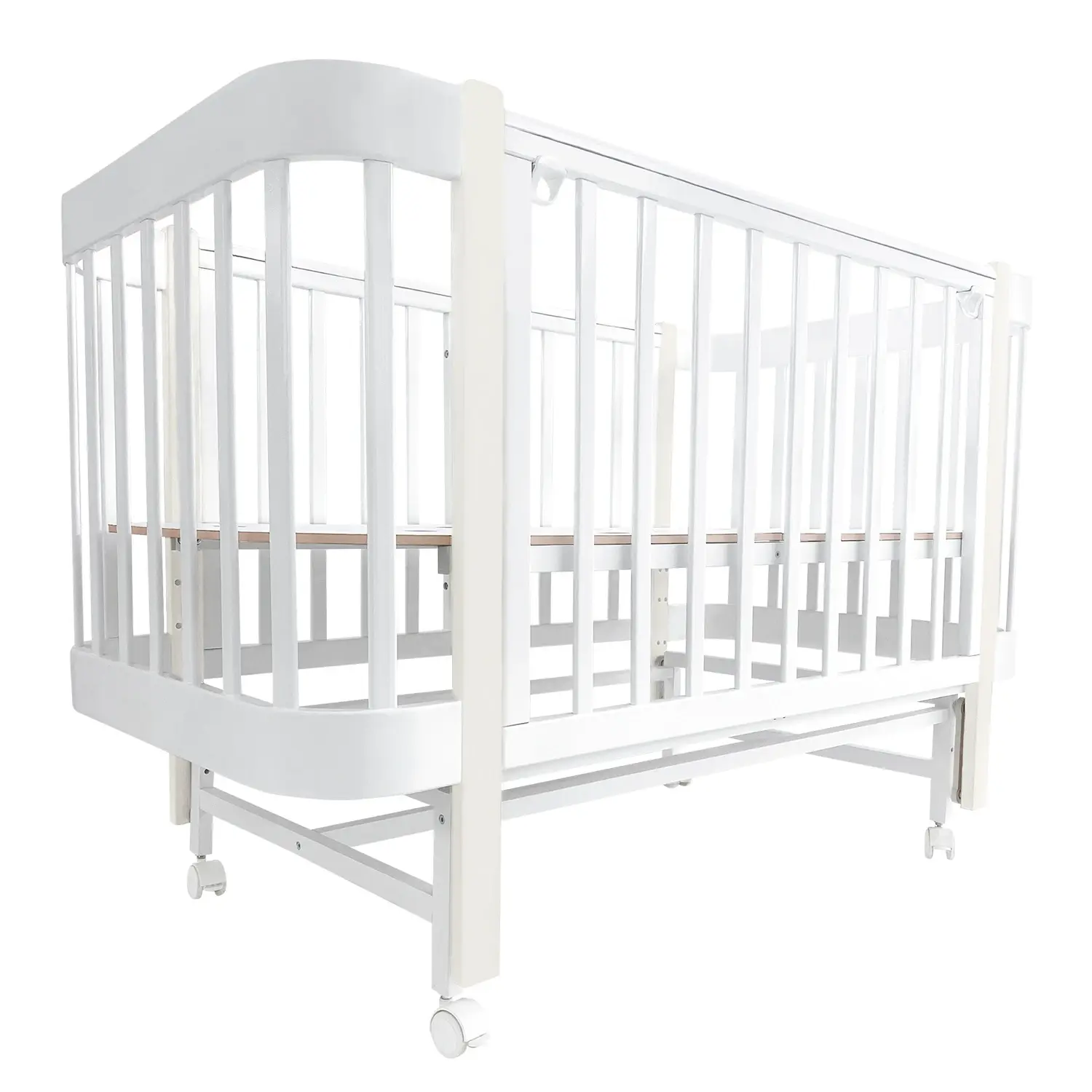 - Кровать детская Indigo Italiano Baby продольный маятник на колесах белый-кашемир