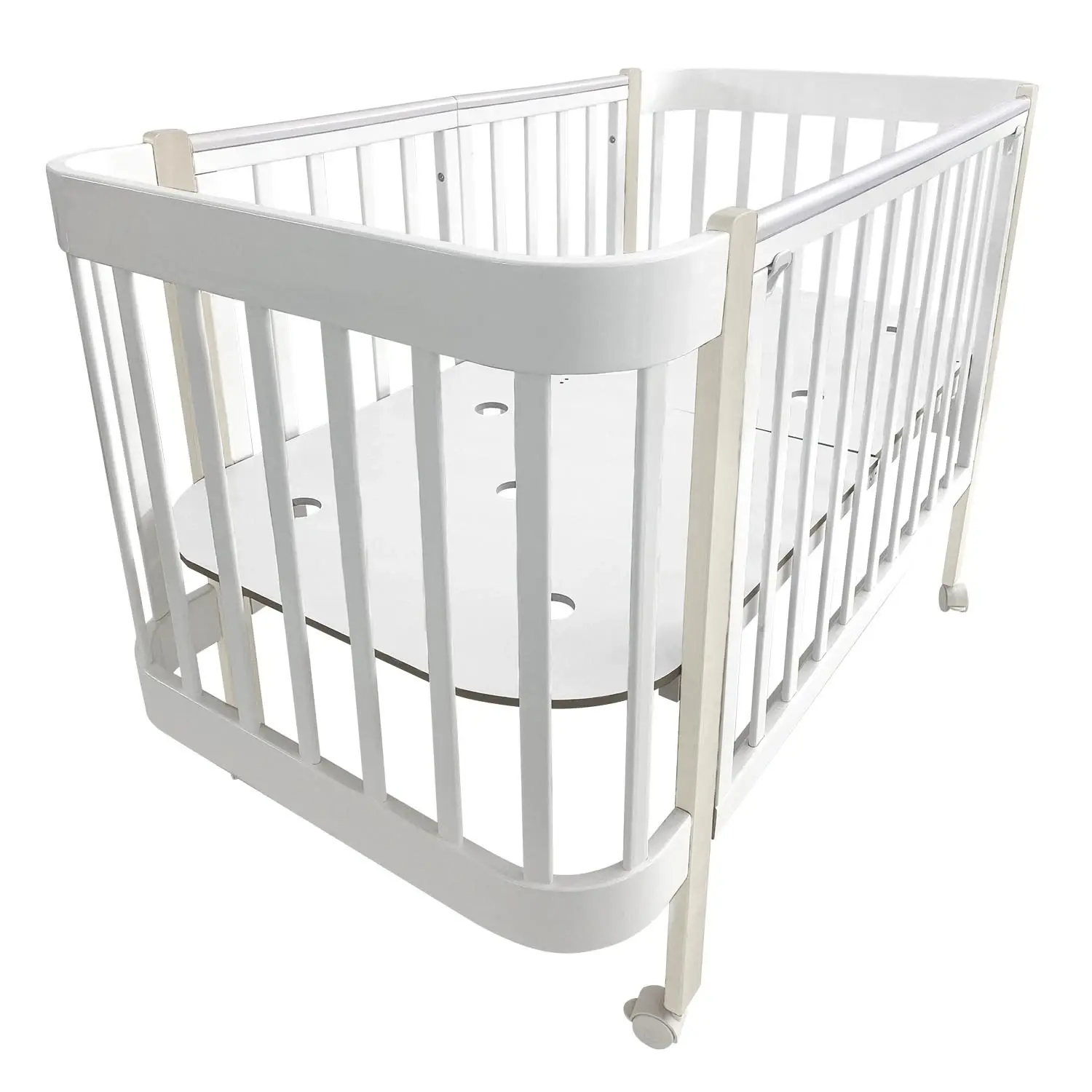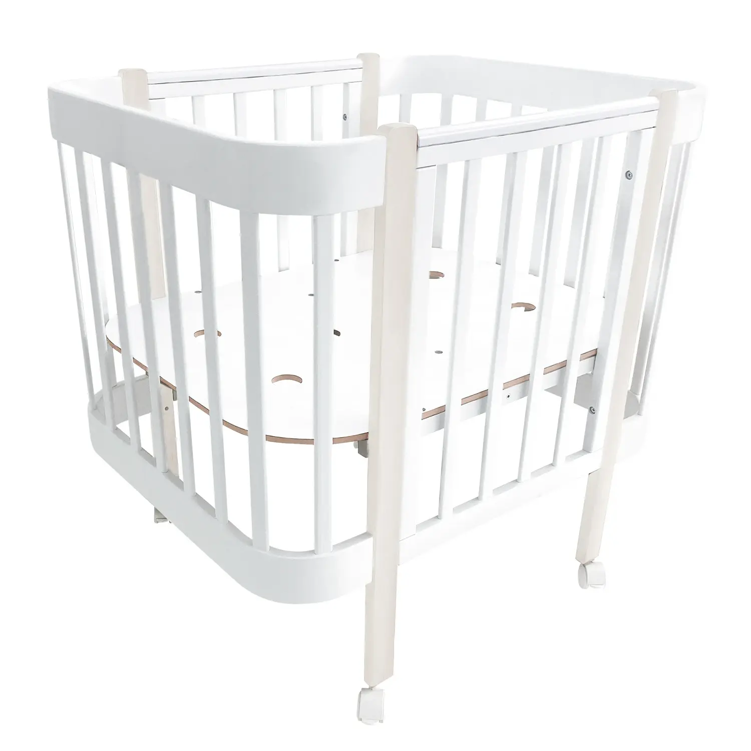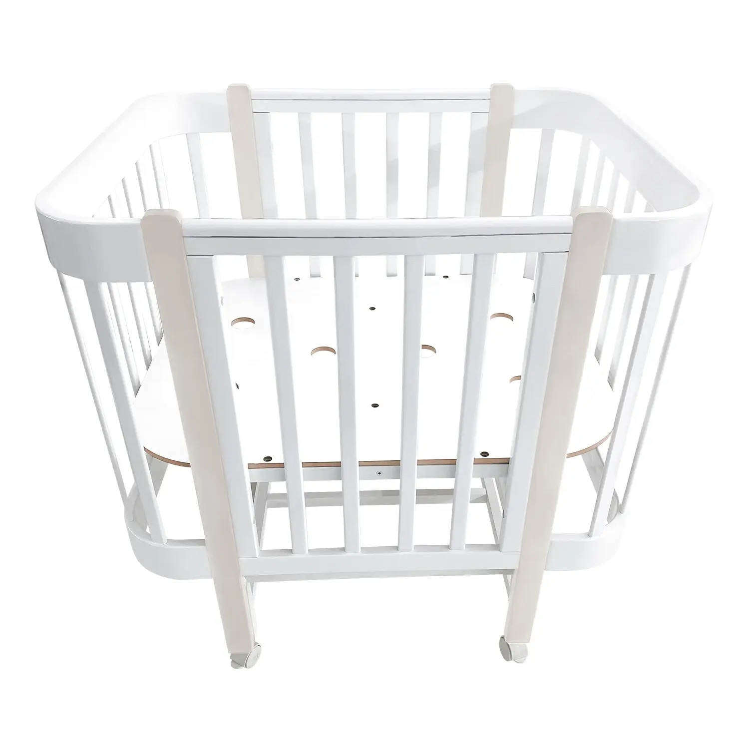 - Кровать детская Indigo Italiano Baby продольный маятник на колесах белый-кашемир