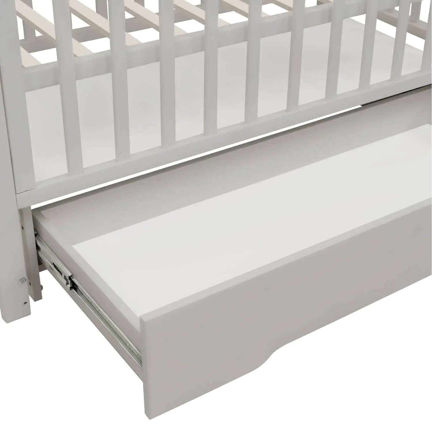 - Закрытый ящик с доводчиком: удобен для хранения постельного белья и детских аксессуаров. Внутренний размер: 105×42,5×9,5 см.