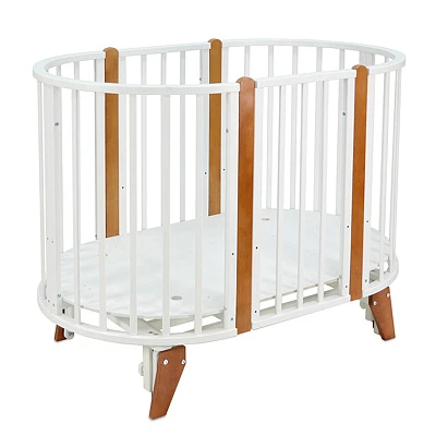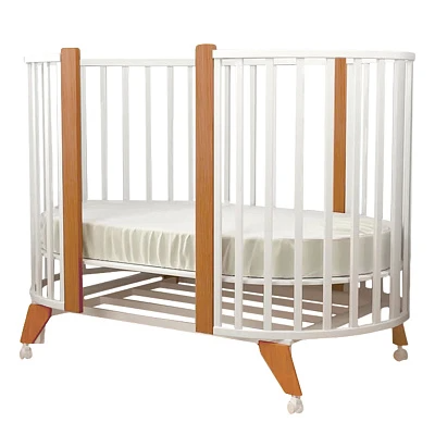 По мере роста крохи, кровать для ребенка можно расширить до овальной колыбели, спальное место 125х75. Если убрать одну из стенок, то Вы получите оригинальный детский диванчик или удобную приставную кроватку. Просто отрегулируйте высоту основания под матрас на одном уровне со взрослой кроватью.