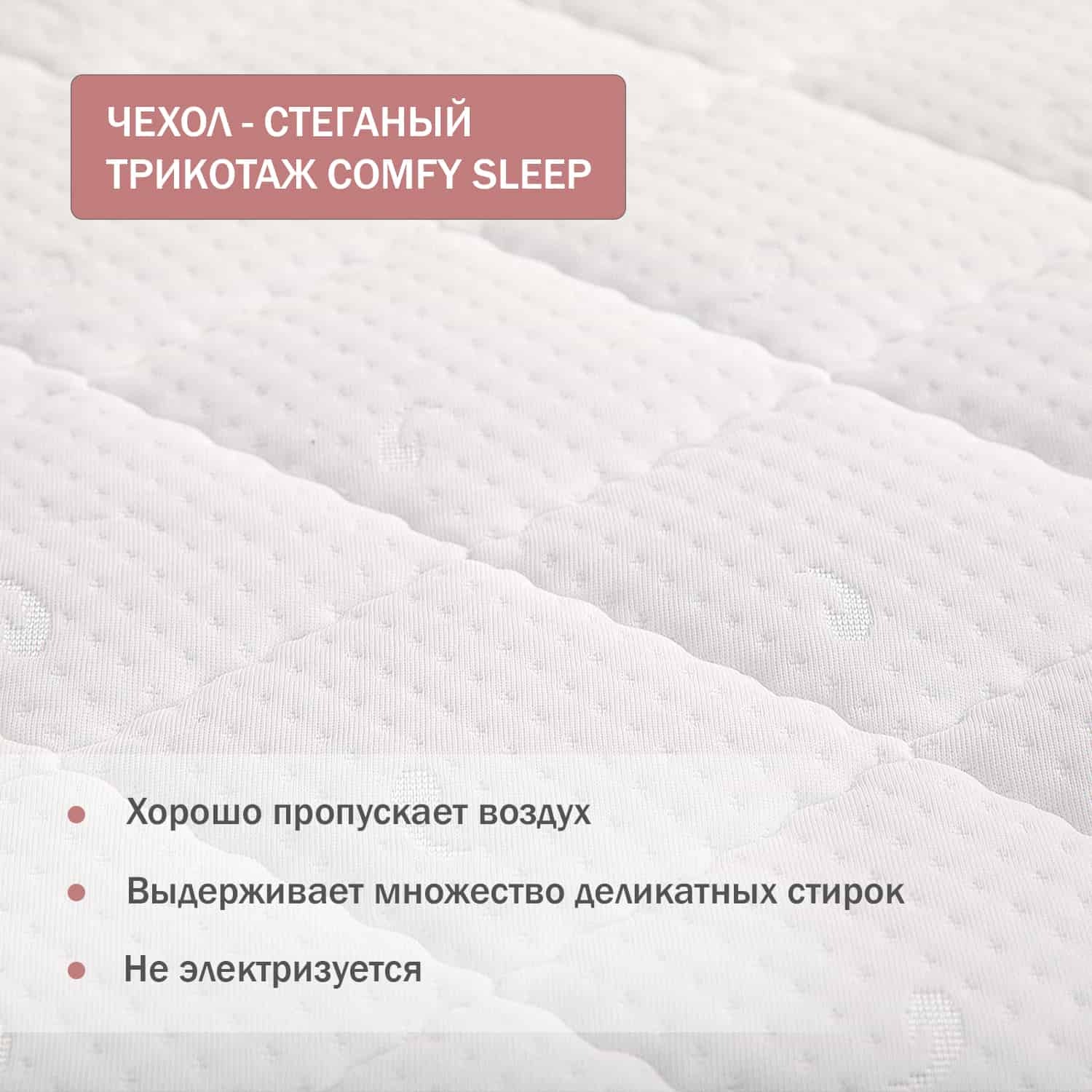 Стеганый, трикотажный чехол Comfy Sleep – съемный, на молнии: легко снимать, легко стирать. Приятный на ощупь, ребенок не потеет, хорошо пропускает воздух, не электризуется.