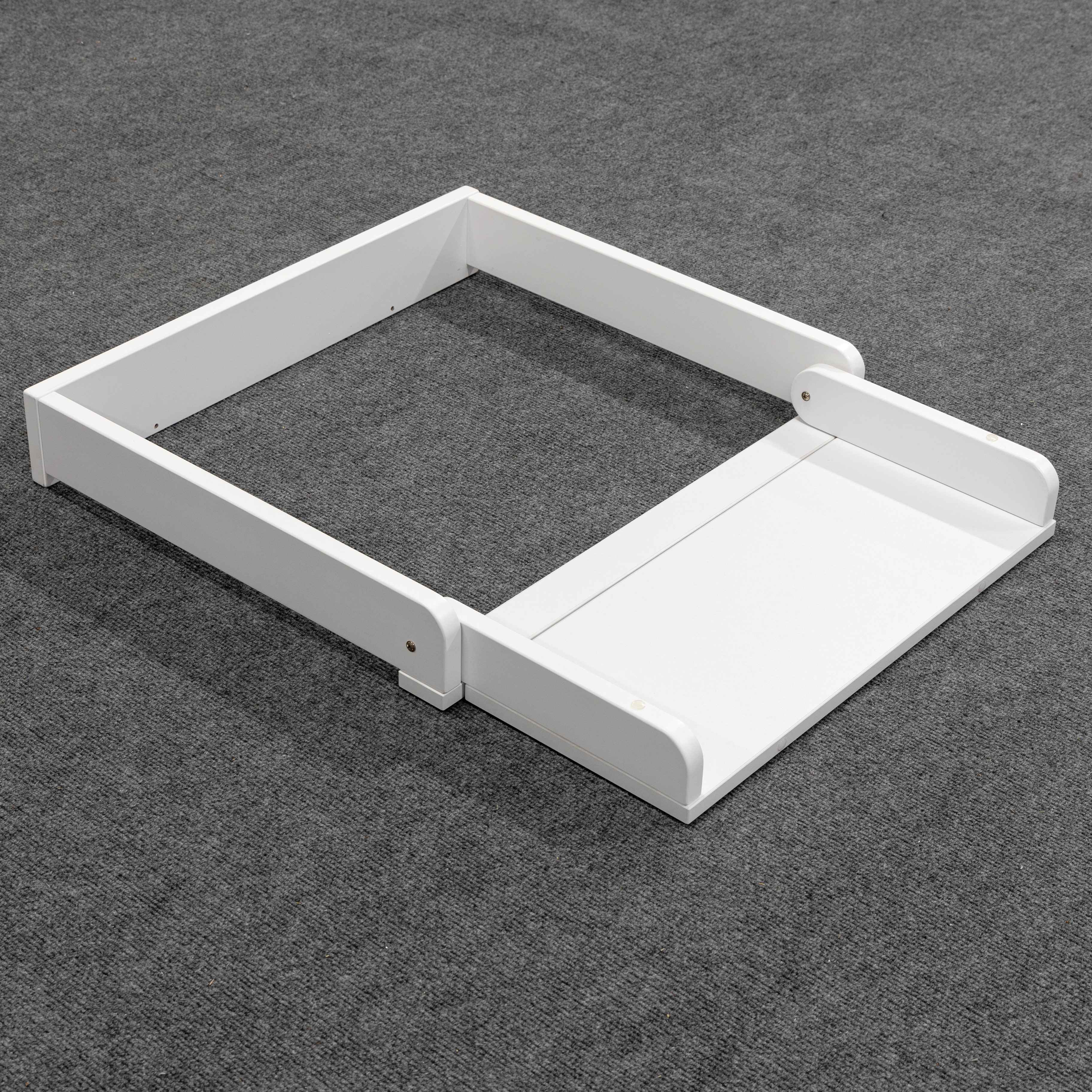 Складной универсальный пеленальный столик (СУПС) - это идеальное изделие для установки на крышку комода и пеленания малыша от 0 до 6 месяцев. Складная пеленальная доска удобна тем, что при ненадобности пеленания ребенка, ее можно сложить и пользоваться комодом, как полноценным и эксплуатировать все ящики без ограничений. Еще одна отличительная черта СУПСа - крепление к комоду, без лишних отверстий в плоскости крышки. С помощью винтов(сзади) и крепежных пластинок (спереди) данный столик стоит жестко.